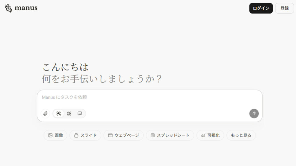 Manus公式サイト にアクセスしてアカウントを作成し、まず1本動画を生成してみる。